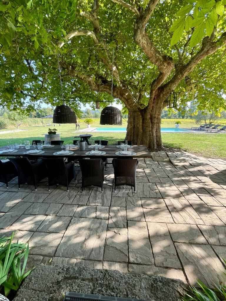 The garden with the heated swimming pool & outdoor spaces In the garden the laurels, and olive fields create a Mediterranean ambiance …Prominent in the garden: a century-old plane that acts as a natural sunshade as well on the terrace as along the swimming pool. The South-facing terrace You will take your apéritif at thesouth-facing terrace, next to or under the shady plane tree.A traditional barbecue is also at your disposal. Discover More .... The Patio The west-facing patio offers maximum, warm afternoon and evening sun, making it ideal for late-day Entertaining and lounging.You will enjoy the evening dinner at sunset in the west facing patio. Discover More .... The Swimming Pool The heated (on request) pool of 12 m by 5 m and an electric role shutter offers you a perfect swim from April to end of September. Discover More .... What else in the garden ? a ping pong tablea pétanque courta trampoline integratedinto the ground Discover More ....